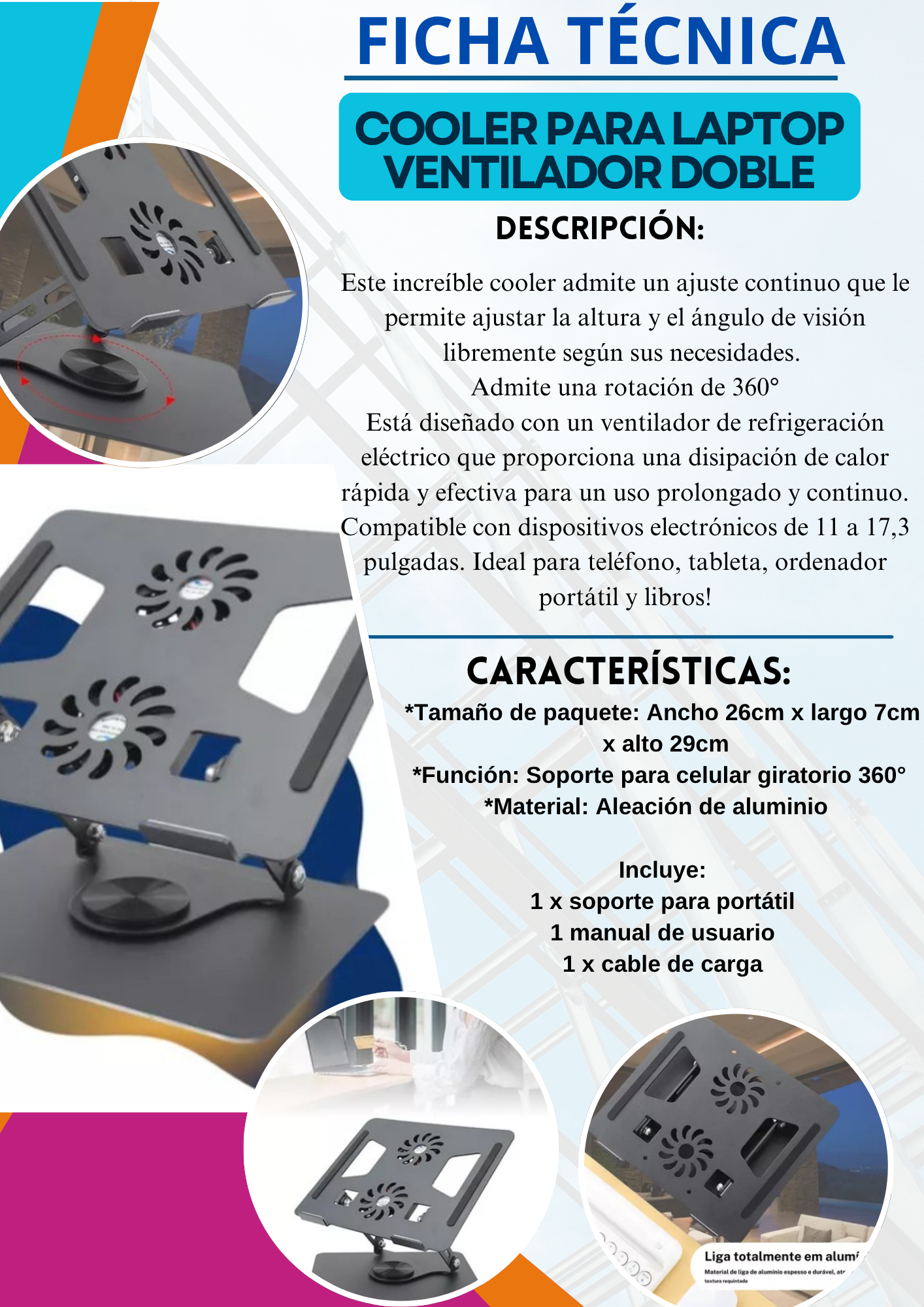 🧊 Descripción del Producto – Cooler para Laptop 360° con 2 Ventiladores